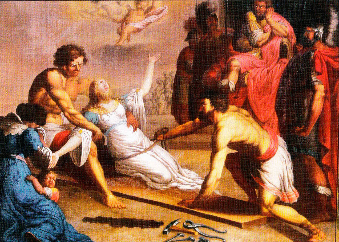 No one knows who exactly painted the piece but its known that the artist mixed his blood into the paint and soon after the painting was finished committed suicide. Hope you will enjoy. Also if you hang our prints on a wall they will increase your mood every day.